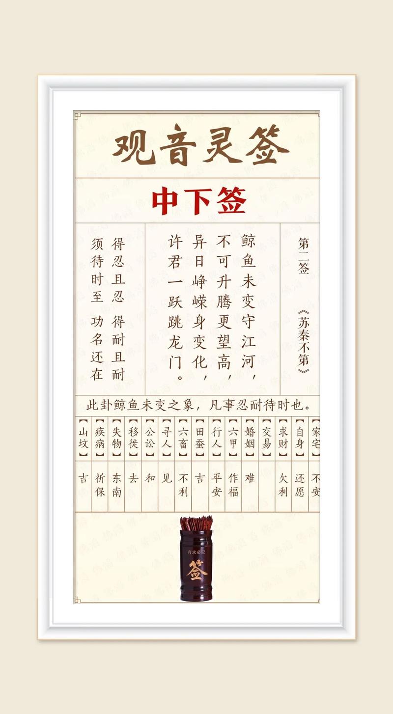 觀音靈簽的精妙之處在于,同一支簽,對應(yīng)不同的問題,其解讀也會有所不同。 讓我們針對常見的疑問,逐一分析: