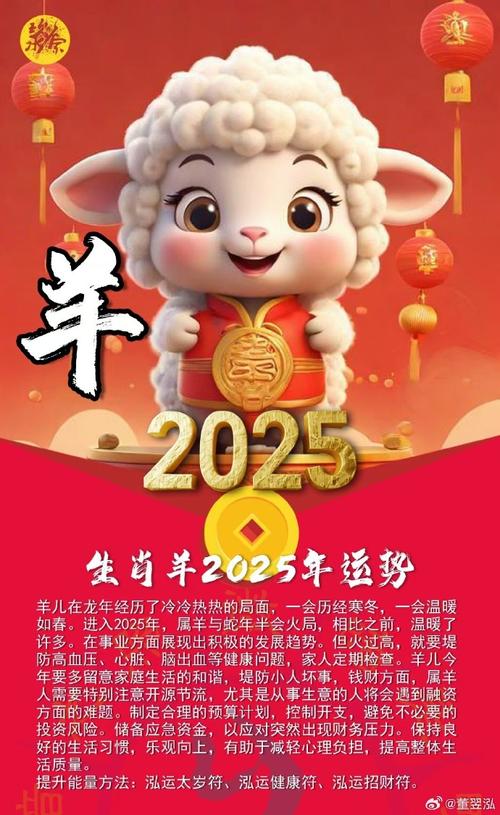 我們需要了解屬羊人在2025年的整體運勢基調(diào)。2025年為乙巳蛇年,對于屬羊人而言,整體運勢屬于穩(wěn)中有升的格局。事業(yè)方面,會有一些新的機會出現(xiàn),需要謹慎把握,不宜沖動冒進。感情方面,較為平淡,需要主動創(chuàng)造驚喜。而健康方面,則需要注意勞逸結(jié)合,避免過度透支。