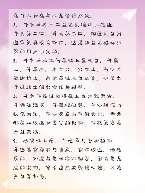 在現(xiàn)實(shí)生活中,也存在許多屬羊男和屬牛女成功結(jié)合的案例。這些案例往往展現(xiàn)出雙方互相彌補(bǔ)、共同成長(zhǎng)的模式。比如,屬羊男的藝術(shù)天賦和創(chuàng)造力,可以為家庭生活增添情趣和活力;而屬牛女的務(wù)實(shí)和勤勞,則可以為家庭提供穩(wěn)定的經(jīng)濟(jì)保障。雙方在各自擅長(zhǎng)的領(lǐng)域發(fā)揮優(yōu)勢(shì),共同為家庭創(chuàng)造美好的未來(lái)。
