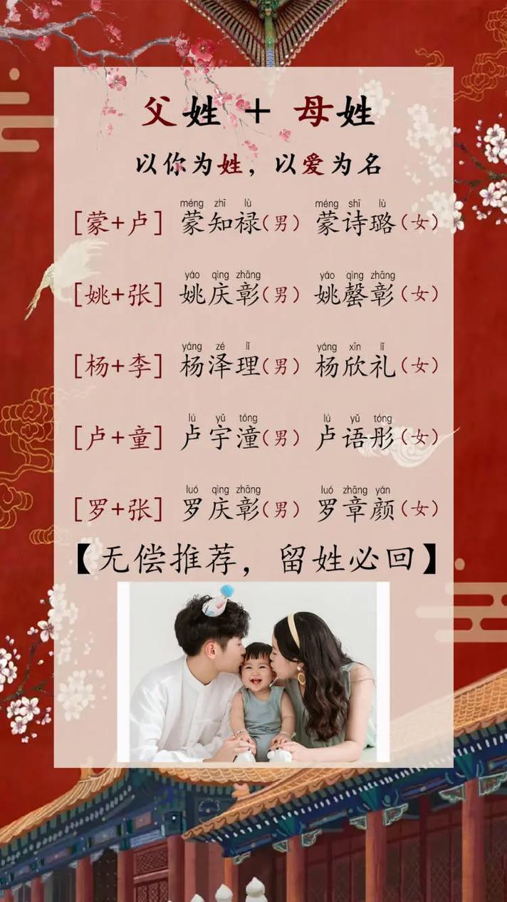 將父母的姓氏融入名字中,是一種充滿愛意的起名方式,既能體現(xiàn)家族傳承,又能賦予名字特殊的意義。