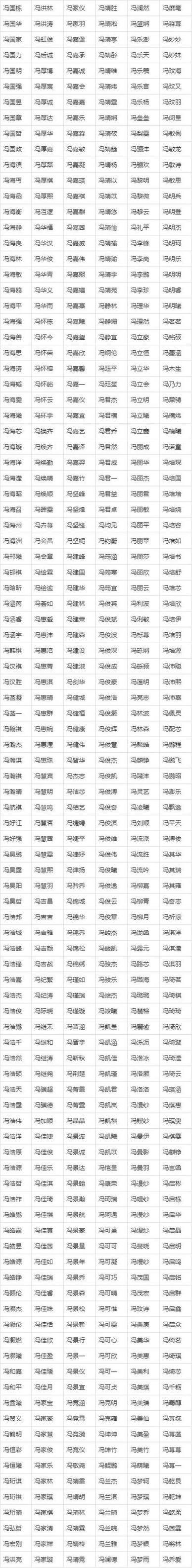 祝愿健康平安: 可選用“康”、“寧”、“安”、“泰”、“和”等字,希望孩子健康快樂,一生平安。例如:馮世康、馮世安、馮世和。