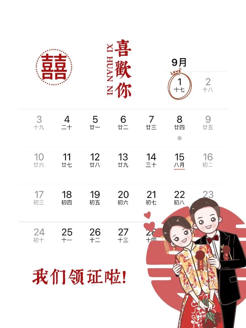 以領證時間九月吉日對照表(9月領證的日子):締結(jié)婚約的良辰吉時