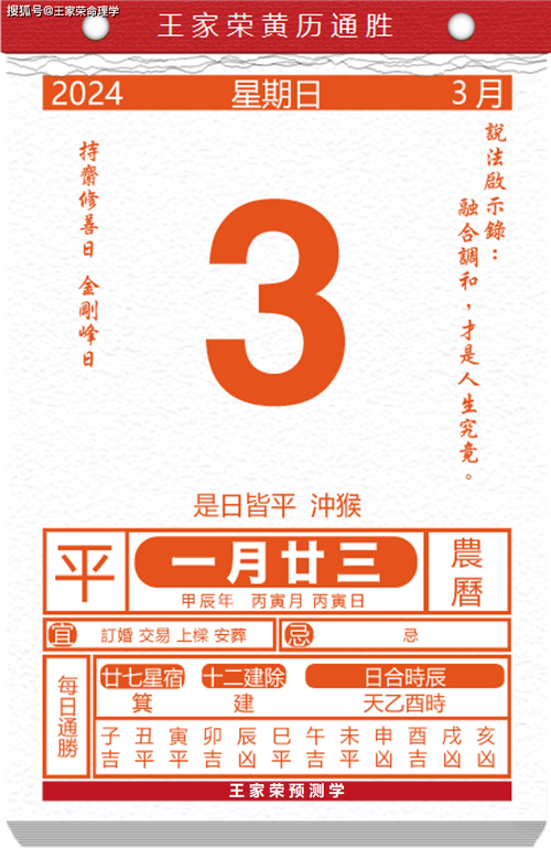 沖煞生肖:3.4號為己丑日,沖犯龍、羊生肖。屬龍、羊者宜謹慎行事,避免與生肖相沖帶來的不利影響。