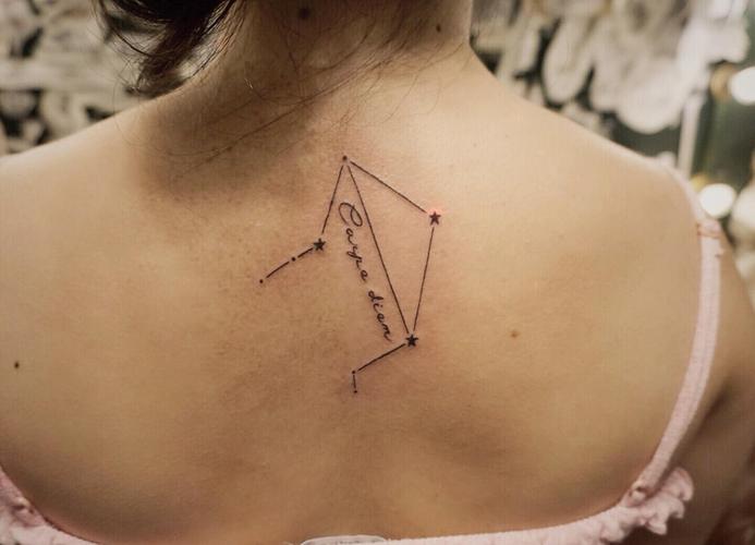 天秤座的星群也是紋身中的熱門選擇。女性可以選擇描繪完整的星座圖案,或者僅展示天秤座的代表性符號。這些紋身可以放置在幾乎任何地方,從腳踝到頸部。