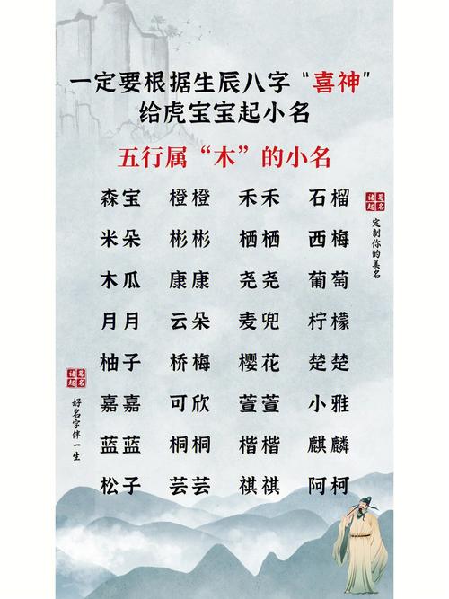 為虎年生肖寶寶起名,需以木為喜神,平衡八字陰陽五行,契合虎的性格特征。