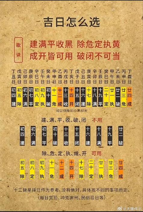 星宿:避開兇星當(dāng)值的日子,如七殺、破軍等。