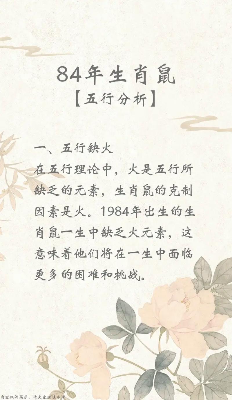 1984年出生的屬鼠人,五行屬金,納音金箔金,也稱金鼠。在八字命理中,金鼠人往往性格堅強、獨立自主,有著較強的意志力和執(zhí)行力。