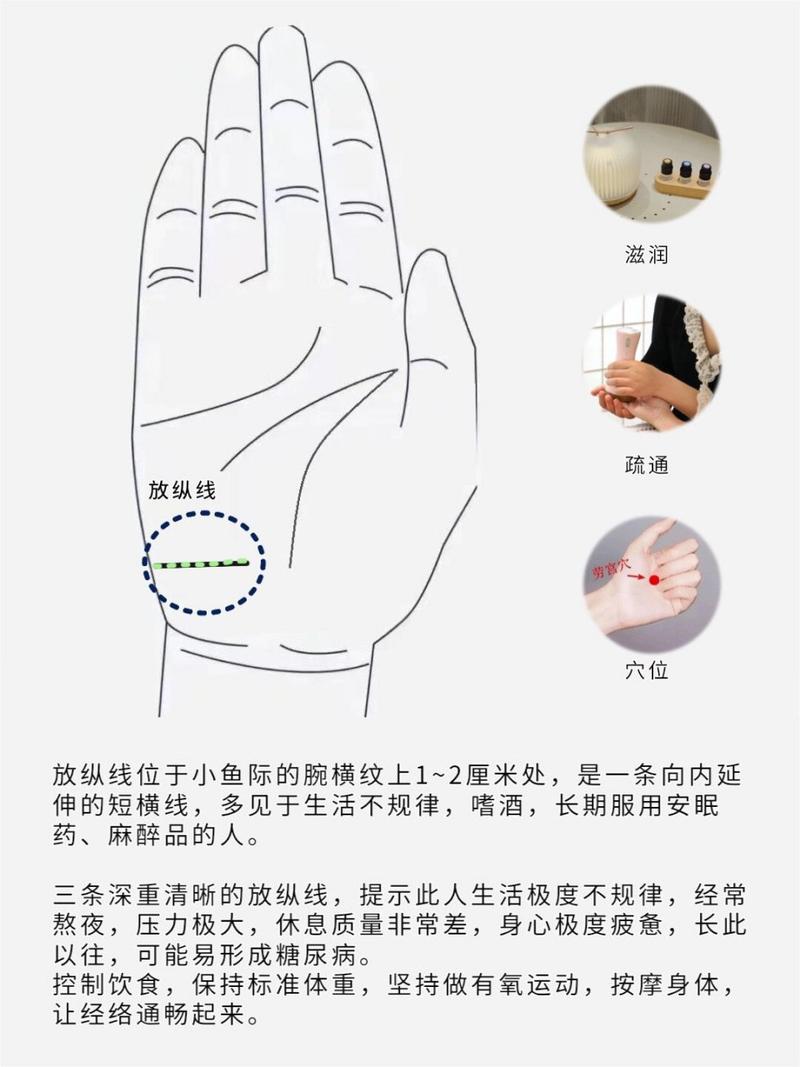 在手相學(xué)中,所謂的“放縱線”并非指一條單一、固定的紋路,而是指一種特征組合,通常與影響線、感情線、健康線等線條相互作用,共同呈現(xiàn)出一種 “易受誘惑、情感豐富且表達方式較為直接” 的傾向。它并非一個正式的術(shù)語,更多是手相師在實踐中出的經(jīng)驗性稱謂。
