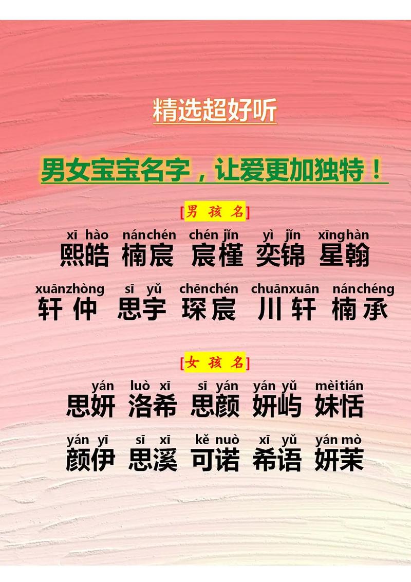 “以起名字男女孩配對好嗎?”這個(gè)問題并沒有絕對的答案。在起名字時(shí),應(yīng)該綜合考慮傳統(tǒng)文化、音韻美學(xué)、現(xiàn)代心理學(xué)和個(gè)體發(fā)展等多個(gè)因素,理性看待,個(gè)性化定制。