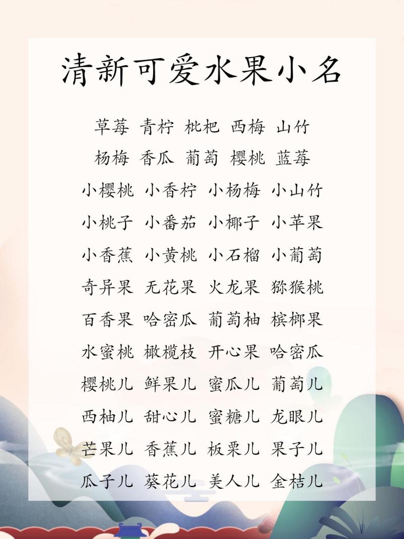 5. 易于發(fā)音和記憶:小名主要是方便家人和朋友稱呼,因此要選擇簡(jiǎn)單易懂,容易發(fā)音和記憶的水果名稱。