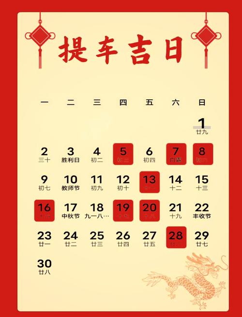 購(gòu)置新車是一件令人興奮的事情,對(duì)于許多人來(lái)說(shuō),選擇一個(gè)吉祥的日子提車,是對(duì)未來(lái)出行平安順利的一種美好期盼。在中國(guó)傳統(tǒng)文化中,擇日是一門精深的學(xué)問(wèn),提車吉日的選擇也頗有講究。本文將以“九月份提車大吉日:2021年九月提車的吉祥日子”為題,深入探討2021年九月適合提車的吉日,并結(jié)合黃歷、生肖、八字、五行等因素進(jìn)行分析,為準(zhǔn)車主們提供專業(yè)精準(zhǔn)的參考意見(jiàn)。