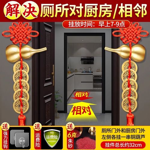 2. 葫蘆:葫蘆因其獨特的造型,被視為吸納污穢、化解煞氣的吉祥物。葫蘆口小肚大,象征著能將不好的氣場吸入,并轉化為好的氣場。在廚房大門上懸掛葫蘆,可以化解廚房內(nèi)的油煙、穢氣,保護家人的健康。尤其對于廚房與衛(wèi)生間或臥室相對的情況,葫蘆更能起到重要的化煞作用。選擇葫蘆時,可以選擇天然葫蘆或銅葫蘆,并注意定期清潔,保持其功效。