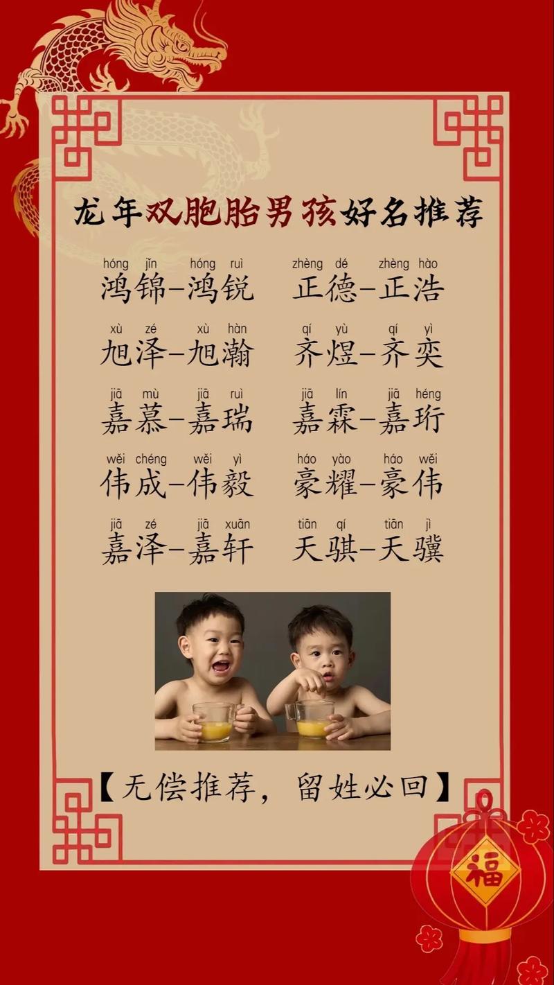 雙胎男性寶寶起名大全(2021雙胎男寶寶名字)
