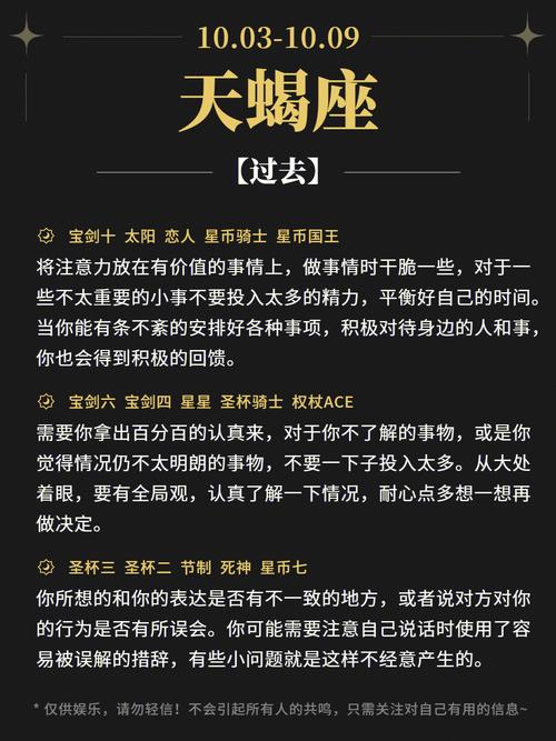 天蝎座的感情運勢與心靈成長息息相關。只有提升自我價值,才能吸引到真正的愛情。學習新的知識,培養(yǎng)新的技能,提升自己的內(nèi)在魅力。當你變得更加自信、獨立、有魅力時,自然會吸引到與你相配的人。 真正的愛情是建立在平等和尊重的基礎上的。