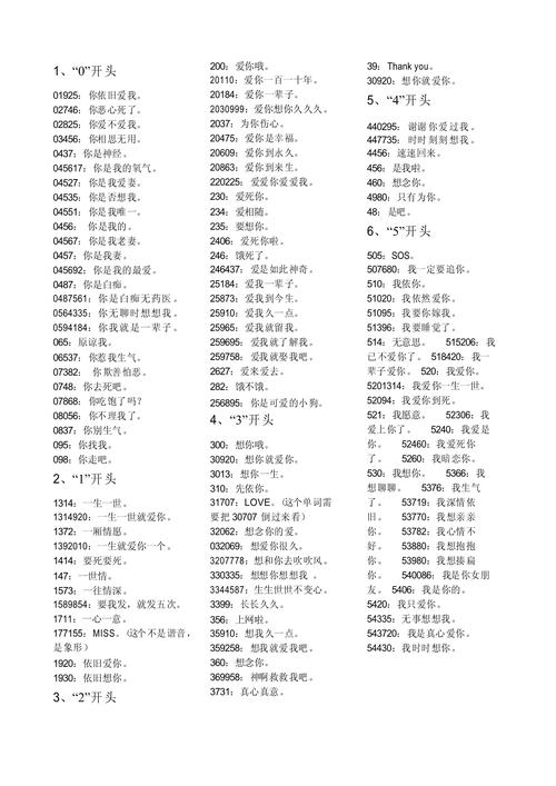 通過(guò)數(shù)字諧音來(lái)判斷一個(gè)人的運(yùn)勢(shì)是一種常見的數(shù)字命理學(xué)方法,但需要注意的是,這種方法缺乏科學(xué)依據(jù),屬于一種迷信行為。以下是一些常見的數(shù)字諧音及其被認(rèn)為的寓意: