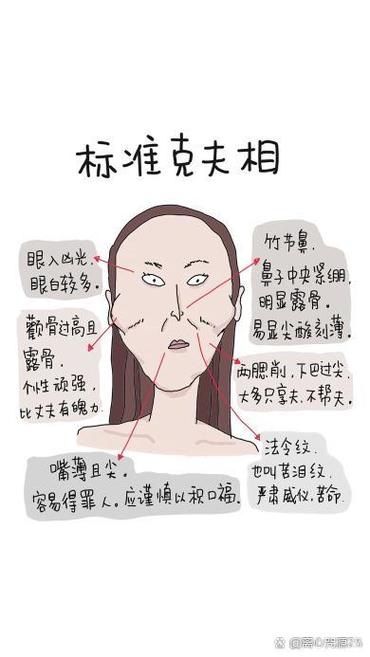 克夫相首推五官失衡。如果女子顴骨過高,鼻梁卻低平,則被認為是克夫之相。顴骨代表權(quán)力欲,鼻梁則代表丈夫的運勢。顴高鼻低意味著女強男弱,容易壓迫丈夫,導致其事業(yè)發(fā)展受阻。