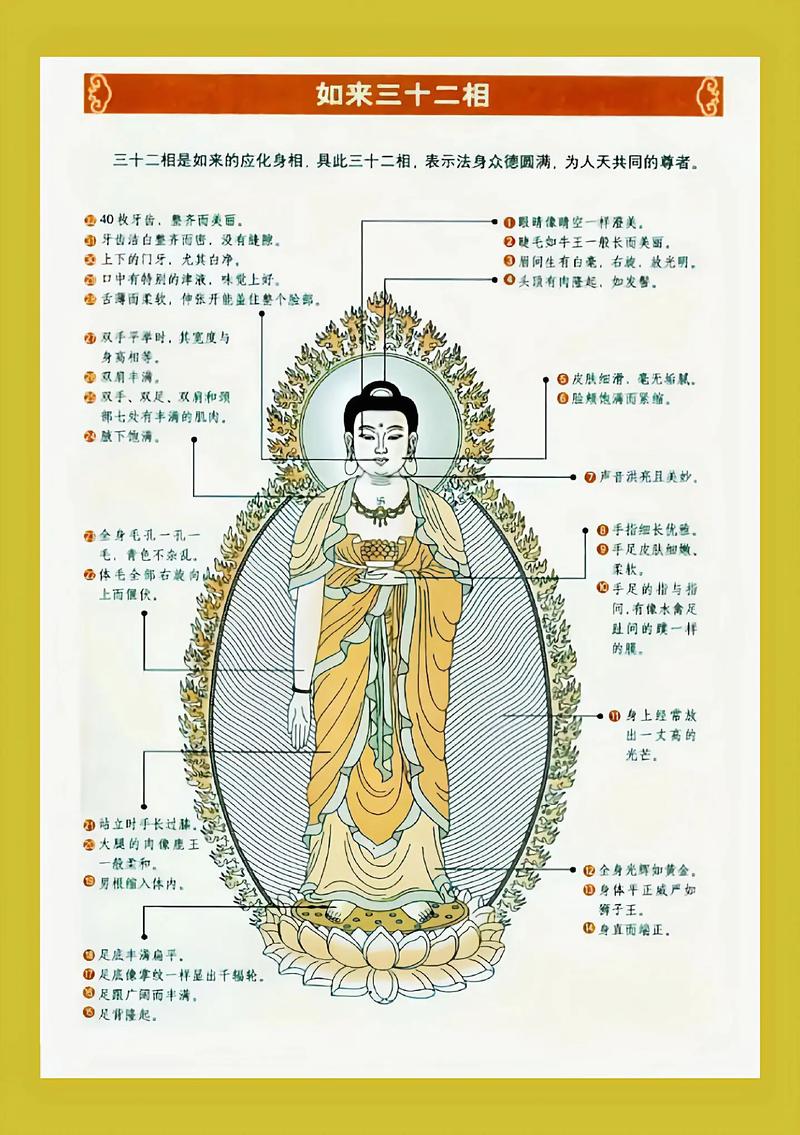 這些面相特征共同構(gòu)成了佛陀超凡脫俗的面容,象征著他對宇宙真理的深切理解、無與倫比的慈悲以及通往Enlightenment的道路。通過凝視佛陀的面相,我們不僅可以看到一位歷史人物,更可以瞥見宇宙的奧秘和人類精神無限的潛力。