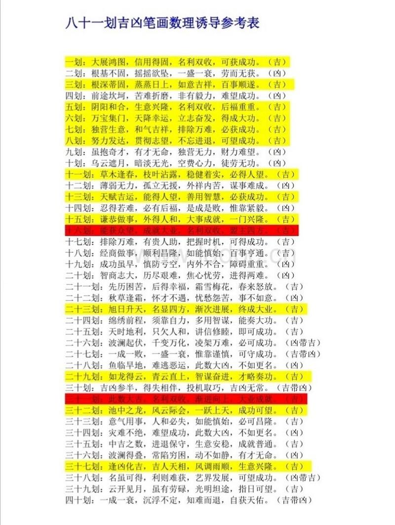 人格:核心運(yùn)勢,影響一生發(fā)展。人格是姓名的中心,代表著個(gè)人的性格、能力和運(yùn)勢的主旋律。人格數(shù)理為吉,則主其人性格積極向上,事業(yè)發(fā)展順利,人際關(guān)系良好;反之,則可能性格較為內(nèi)向,事業(yè)發(fā)展受阻,人際關(guān)系緊張。舉例來說,人格數(shù)理為23,屬于“旭日東升”的吉數(shù),象征著蓬勃的生命力和光明的前景,但同時(shí)也需要警惕“物極必反”的道理,避免過于自信而導(dǎo)致失敗。