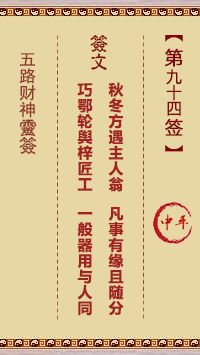 神霄靈簽94簽是道教中的一種占卜方式,通常用于解答生活中的各種問題。以下是對靈簽94簽的詳細(xì)解簽結(jié)果和含義。
