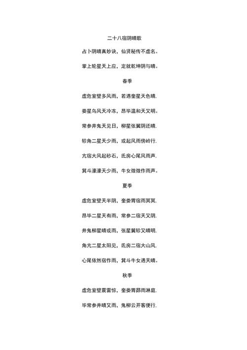二十八宿陰晴吉兇歌訣(二十八宿陰晴吉兇歌訣大全)