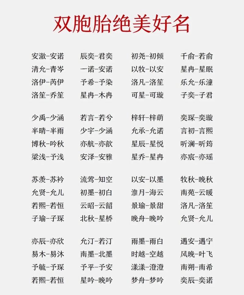 為雙胞胎寶寶起名,更需要考慮名字之間的關(guān)聯(lián)性。 可以選擇意義相近、字形相似、讀音和諧的名字,以彰顯雙胞胎的特殊身份。 以下是一些雙胞胎名字的起名思路: