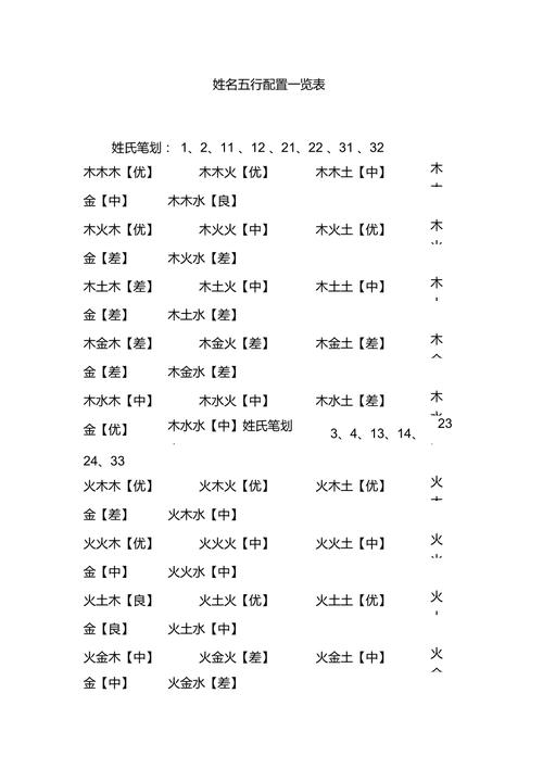 姓名與五行配對(duì)大全表 姓名命格配對(duì)表