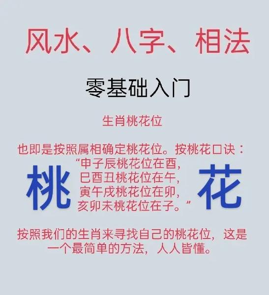 1. 本命桃花位:這是根據(jù)生肖確定的永久性桃花位。算法如下: