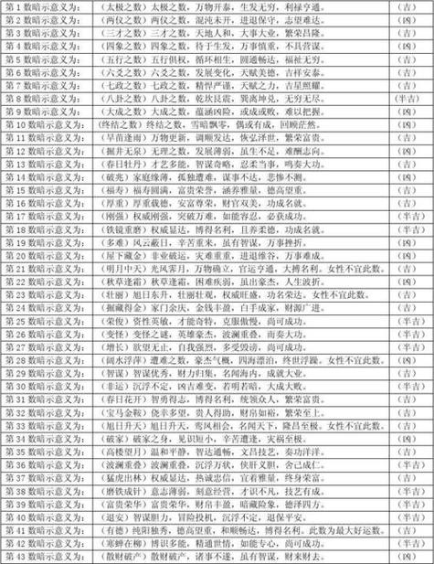 根據(jù)不同的筆畫數(shù),人格和地格有對應的吉兇對照表。例如,人格數(shù)為1、3、5、7、9為吉數(shù),而2、4、6為兇數(shù)。
