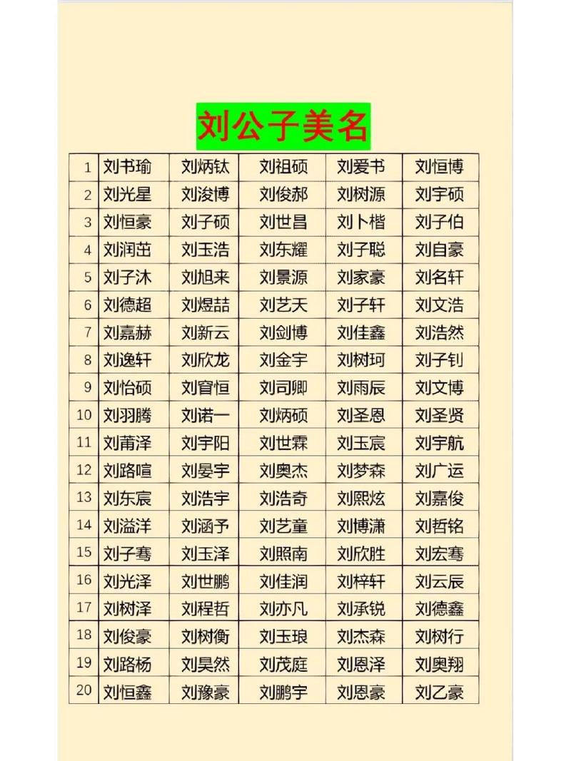以下提供一些精選的劉氏男女寶寶名字示例,并附帶簡要的寓意解釋,供參考: