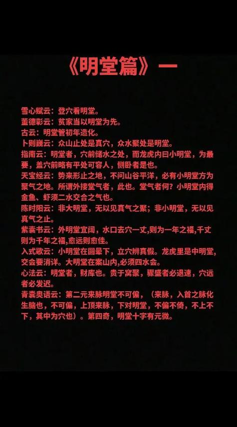 明堂在風(fēng)水學(xué)中是指墓地或住宅前的一塊平坦開闊區(qū)域,是氣場聚合的地方。明堂分為小明堂、中明堂和大明堂,其中中明堂最為重要,直接影響到墓地的風(fēng)水效果。