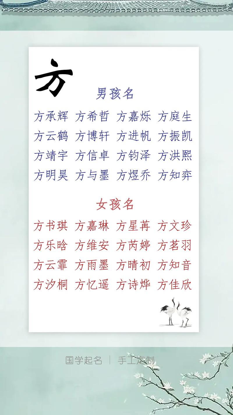 方泓澤:意為泓水深邃廣闊,澤水滋潤萬物,寓意寶寶博學多才,心胸寬廣。