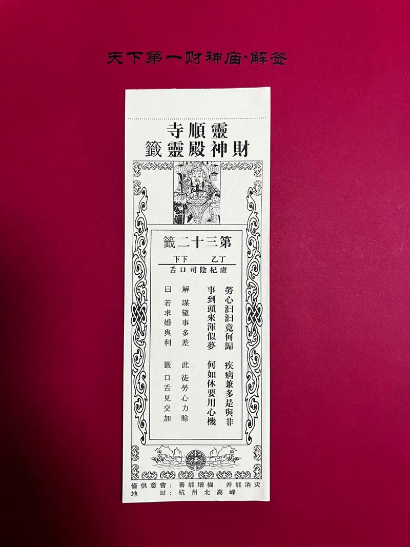 杭州財神殿靈簽第三十二簽 杭州財神廟解簽第29簽詳解