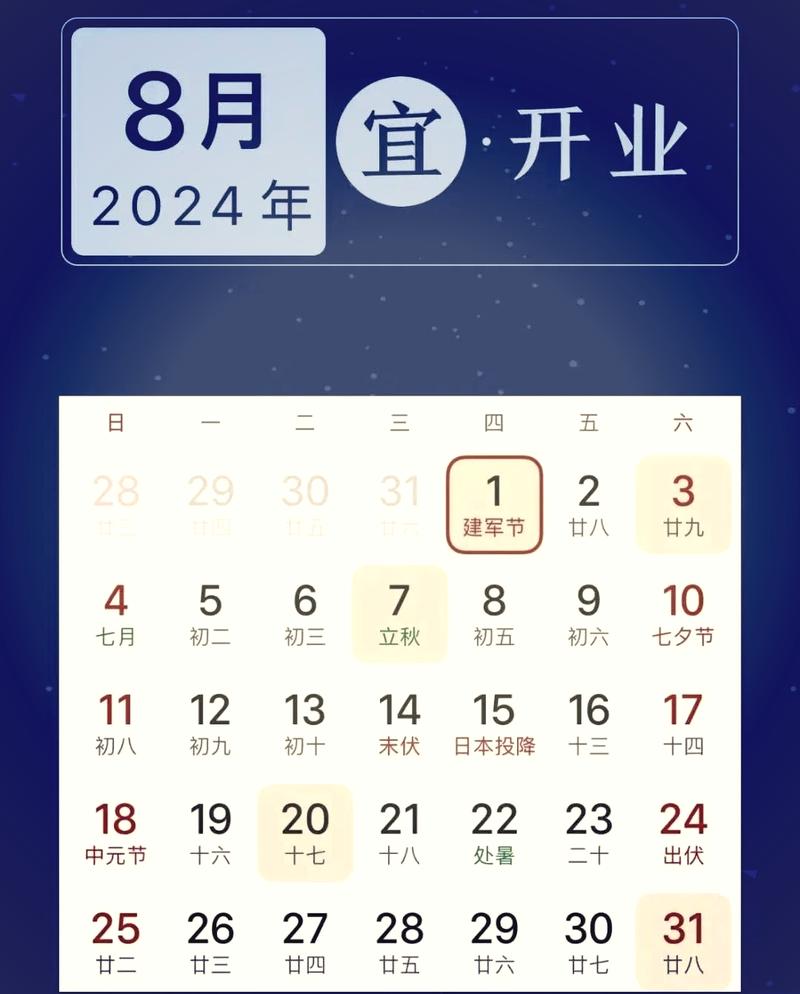 2024年8月31日:農(nóng)歷七月廿八,適合搬家、租房,吉神宜趨天德合、天赦、天倉、天喜、不將。