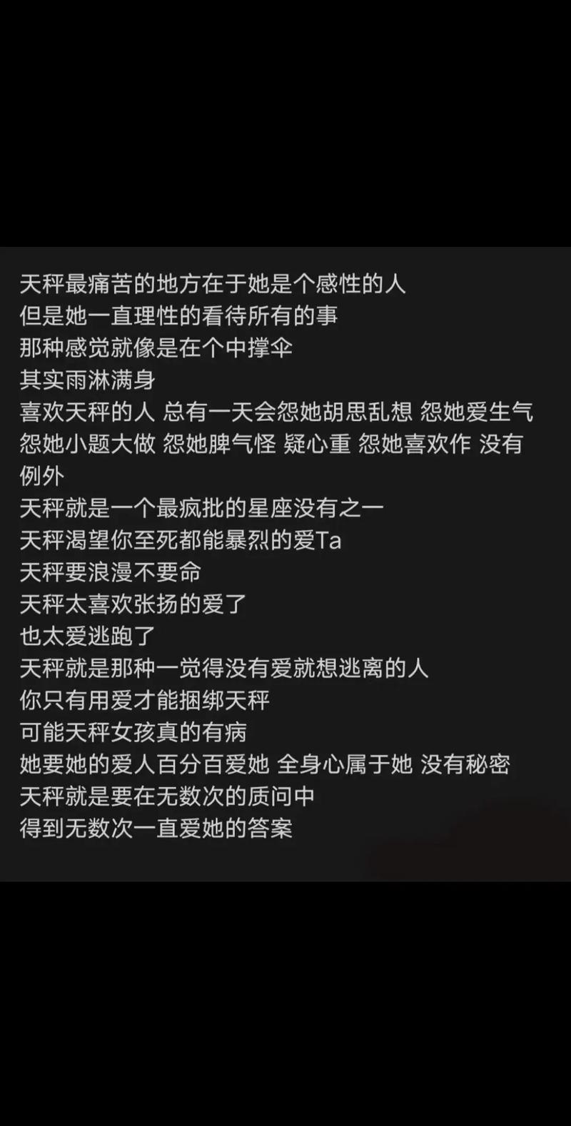 “如果你也愛上了一個天秤座,請珍惜這份難得的緣分,用心經(jīng)營你們的愛情。”