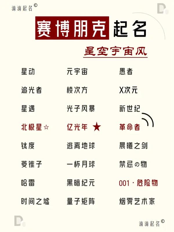 許多經(jīng)典的科幻作品,例如《銀翼殺手》、《星球大戰(zhàn)》、《星際迷航》等,都塑造了許多令人印象深刻的角色和概念,這些都可以作為起名的靈感來(lái)源。