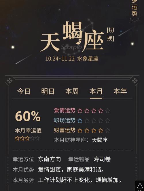 有伴侶的天蝎座需要特別注意溝通問題,避免因過度的控制欲而引發(fā)矛盾。通過真誠(chéng)的溝通和理解,可以增進(jìn)彼此的感情。