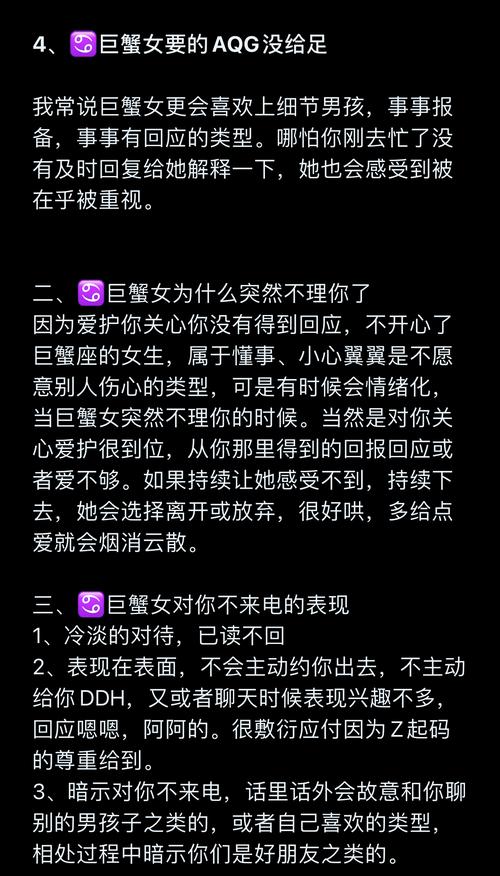 面對(duì)巨蟹座女生的冷落,采取以下措施可以幫助化解僵局: