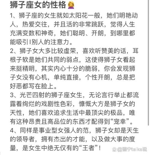 家庭責任感強:獅子座女性對家庭有著強烈的責任感,她們愿意為家庭的幸福和繁榮付出一切努力。她們的關愛和照顧,使得家人感受到家庭的溫暖和和諧。