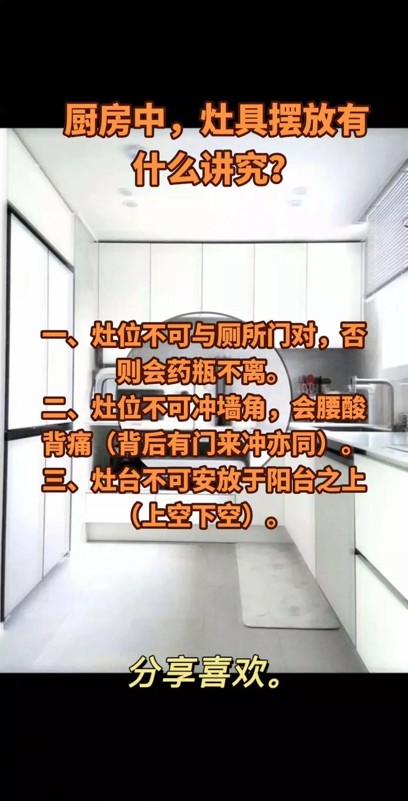 很多人為了擴(kuò)大室內(nèi)面積,將廚房外推至陽臺,這時候廚房中的爐灶會出現(xiàn)懸空的現(xiàn)象,這種風(fēng)水很容易招惹是非,會有火厄的疑慮。爐灶懸空被稱為“無根灶”,易破財且有安全隱患。建議將爐灶移回室內(nèi)或安裝穩(wěn)固的支架。