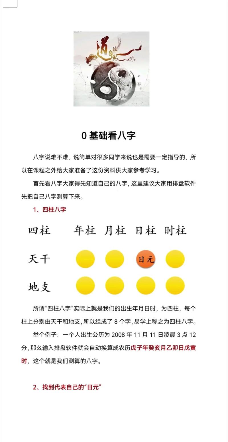 八字算命,又稱四柱預(yù)測(cè),是一門古老的中國(guó)命理學(xué)。它以一個(gè)人出生的年、月、日、時(shí)為基礎(chǔ),轉(zhuǎn)換成天干地支,形成八個(gè)字,進(jìn)而推算其一生的命運(yùn)軌跡。雖然八字命理博大精深,但掌握一些 核心概念和基本方法,也能對(duì)自身命運(yùn)有一個(gè)初步的了解。