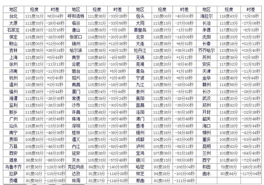 地方時(shí)差 = (104 120) 4 = 64分鐘。
