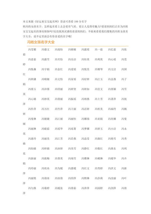 例如:如果母親姓李,可以考慮“馮李婉”、“馮李欣”等名字。