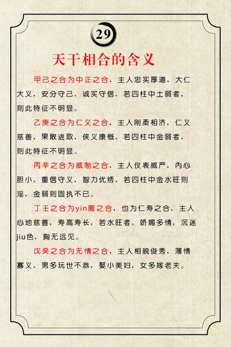 身體健康:正官星也主健康,天干相合增強(qiáng)了正官星的力量,可能預(yù)示著女命健康運(yùn)勢(shì)較弱,容易出現(xiàn)疾病。