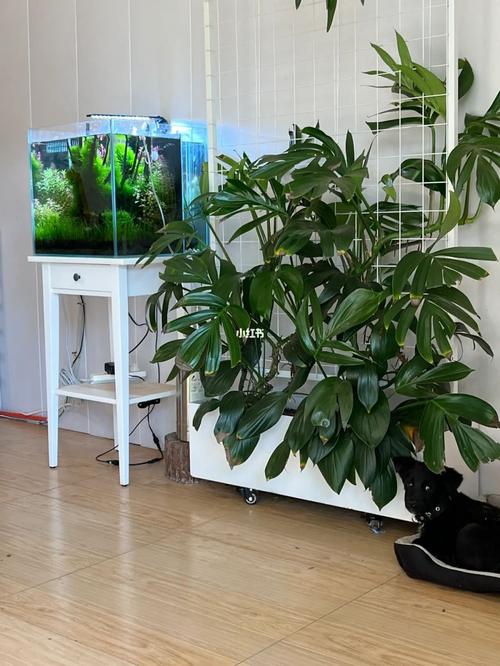 綠植的巧妙搭配:在魚缸旁擺放一些綠植,不僅可以增加觀賞性,還能起到凈化空氣、改善氣場(chǎng)的作用。選擇一些具有招財(cái)寓意的綠植,如發(fā)財(cái)樹、金錢樹等,可以增強(qiáng)魚缸的招財(cái)效果。但要注意,綠植的擺放也要避免影響魚缸的采光和狗狗的活動(dòng)空間。