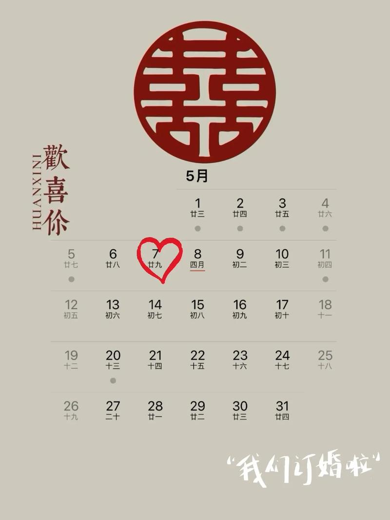 5月25日:農(nóng)歷四月廿八,適合訂婚。