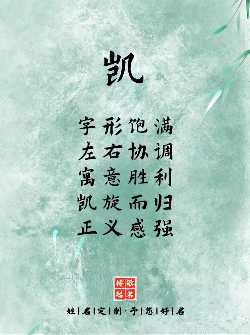 命名是一門藝術(shù),也是一種文化的傳承。一個好的名字,不僅要音韻和諧,寓意美好,更要蘊含著豐富的文化內(nèi)涵。在以“凱”字為核心進(jìn)行命名時,可以參考古代詩詞、典故,或者結(jié)合家族的傳統(tǒng)和文化背景,使名字更具文化底蘊和個性特色。例如,從“凱風(fēng)自南,吹彼棘心”中提取靈感,搭配其他字,賦予名字更深層的含義。
