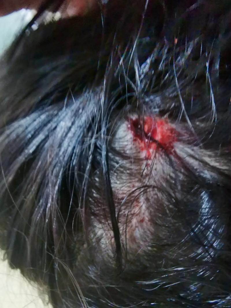 b) 額頭少量出血:小的挫折,名譽(yù)受損。