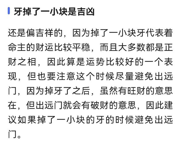 你相信門牙掉了會(huì)帶來吉兇嗎?有人說門牙掉了后要趕緊補(bǔ)起來,否則會(huì)帶來霉運(yùn);也有人說門牙掉了是好事,意味著有好運(yùn)將至。門牙掉了到底吉兇如何呢?