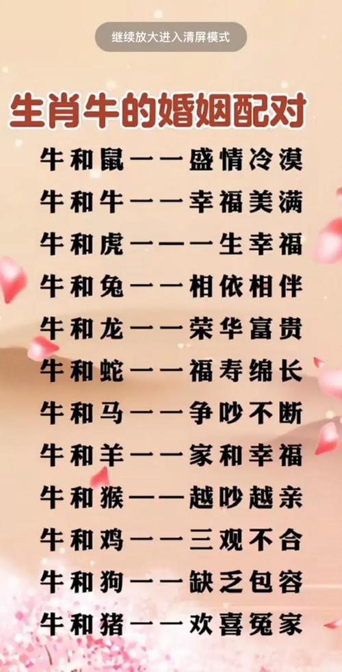 感情美滿:屬牛之人感情專一、忠貞不渝。他們對愛情有著執(zhí)著的追求,一旦認(rèn)定便會全心全意地守護(hù)。他們善于經(jīng)營情感,用真誠和溫暖澆灌愛苗,福星高照,婚姻美滿幸福。
