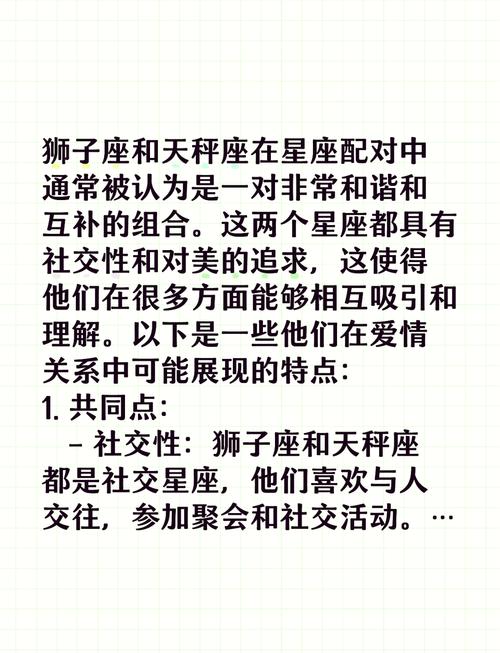 獅子座的霸道,源于他們天生的領導才能和王者風范。他們自信、直率、敢愛敢恨,凡事都要爭個輸贏,最討厭別人挑戰(zhàn)他們的權(quán)威。而天秤座則以優(yōu)雅、平衡、 дипломатических聞名,他們善于交際、愛好和平,最喜歡調(diào)停爭端,討厭一切不和諧的因素。